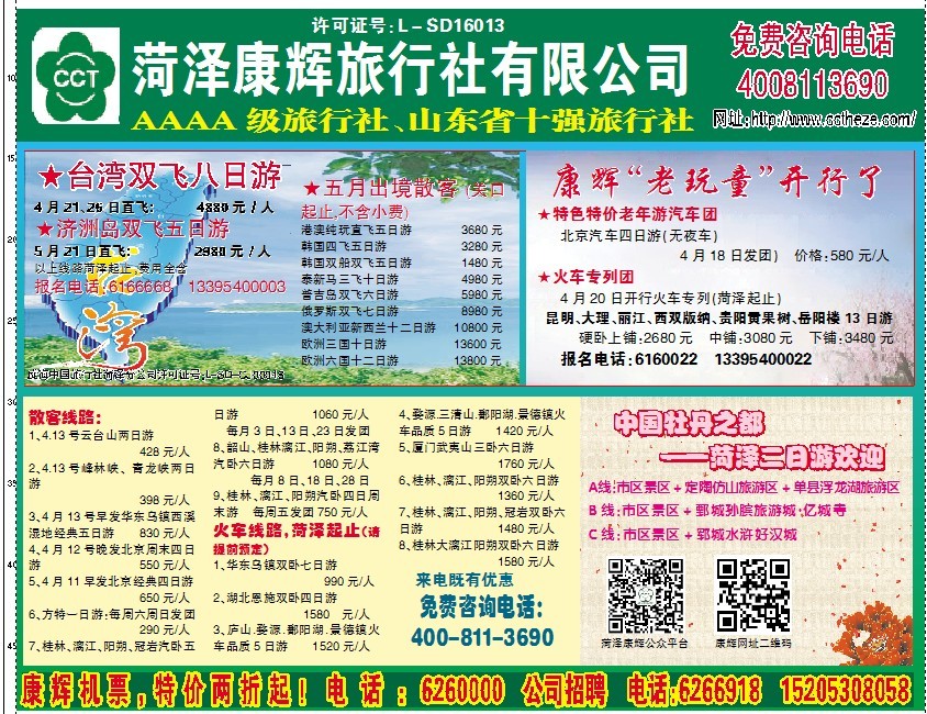 您現在的位置:菏澤旅行社 菏澤旅游 菏澤市康輝旅行社 菏澤康輝國際旅行社 > 企業信息